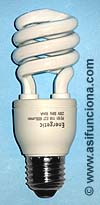Lámpara CFL de 11 watt, con tubo en forma de espiral. |