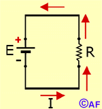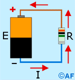 electromotriz (FEM), representada por una pila; un flujo de corriente<