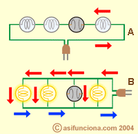 A.- Guirnalda con microbombillas conectadas en serie. B.-
