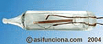 Cuando el calor que disipa el filamento calienta la placa bimetálica, esta se comba, abre el circuito y se apagan el resto de las microbombillas de la