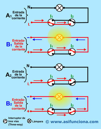 controlada, igualmente, por dos interruptores three-way.