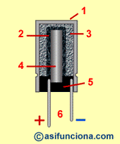 1.– Envoltura cilíndrica de aluminio, correspondiente al polo negativo ()