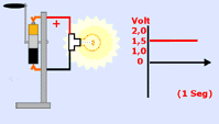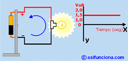 Normalmente cuando una pila se encuentra completamente cargada suministra una FEM, tensión o voltaje de 1,5 volt. Si representamos gráficamente el valor de