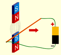 (que hasta ese momento se encontraban en reposo), se pongan en movimiento creando un flujo de corriente eléctrica. Es preciso aclarar que el fenómeno de inducción magnética sólo se produce cada vez que movemos el conductor a través de las líneas de fuerza magnética.