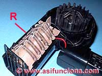 interior se. puede observar una resistencia activa (R) de alambre. nicromo,