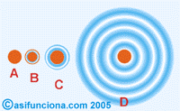 La forma en que se expanden esas ondas de radio, guarda similitud con lo que ocurre cuando tiramos una piedra en la superficie tranquila de un lago o estanque de agua: a partir del punto donde cae la piedra, se generan una serie de ondas que se extienden hasta