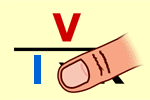 Como se puede observar, la operación matemática que queda indicada será: dividir el valor de la tensión o voltaje "V",