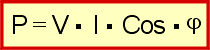 La fórmula para hallar la potencia de los equipos que trabajan con corriente alterna monofásica, teniendo en cuenta su factor de potencia o Cos