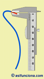 En el caso de este ejemplo, el supuesto diámetro de la parte metálica del conductor, una vez medido con el pie de rey, será de 1,6 mm.