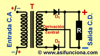 corriente alterna (C.A.) un transformador con una derivación en el centro del enrollado secundario. Esa