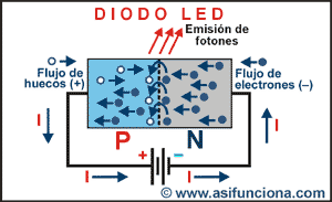 Cuando aplicamos a los extremos del LED una tensión o voltaje que permita polarizarlo directamente, los electrones provenientes de la fuente de suministro de