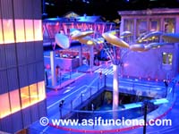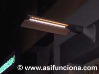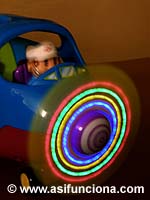 LEDs integrados en un juguete. Abajo, izquierda, ambientación de un local de ocio; abajo, derecha, luminaria de alumbrado exterior.