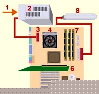 Cuando encendemos el ordenador, la corriente eléctrica (1) llega al