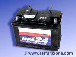 La mayoría de las baterías que se emplean en los coches y vehículos motorizados son del tipo plomo-ácido y de 12 volt de tensión o voltaje. Estas baterías se componen de una caja o recipiente dividido, a su vez, en seis secciones