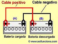 (A) y la otra descargada (B), con el fin de poder arrancar el motor del coche o vehículo