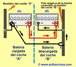 Aquellos que no poseen conocimientos teóricos de electricidad no se deben extrañar que el circuito eléctrico entre ambas baterías se pueda completar conectando la pinza negativa al chasis o bastidor del coche que la tiene descargada.