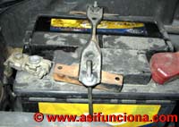 partes metálicas que sujetan la batería al bastidor del coche