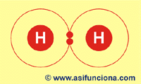cuando se unen dos moléculas de hidrógeno (H + H = H2)