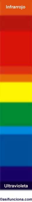 electromagnético correspondiente a la luz infrarroja (IR), a los colores de la luz visible