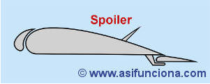 Spoiler desplegado sobre la superficie superior del ala.