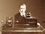 Gugielmo Marconi junto a su transmisor inalámbrico