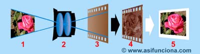 capta el objetivo fotográfico (2) y se. proyecta sobre la superficie