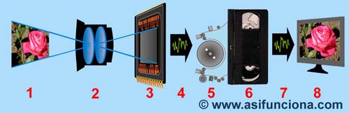 cinta de video y las convierte de nuevo en imágenes analógicas. Todas