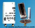 Conectado en paralelo con la lámina bimetálica, se encuentra un capacitor antiparasitario, encargado de evitar que durante el proceso de encendido se produzcan interferencias audibles a través del altavoz de un receptor de radio o ruidos visibles en la pantalla de algún televisor que se encuentre funcionando próximo a la lámpara.