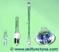 la que normalmente soportan las lámparas comunes (3 000 ºC ó 5 432 ºF aproximadamente) y obtener una mayor intensidad de iluminación por unidad de energía, el gas argón se sustituye por un gas halógeno, como el iodo (I) o el bromo (Br). Además, en lugar de