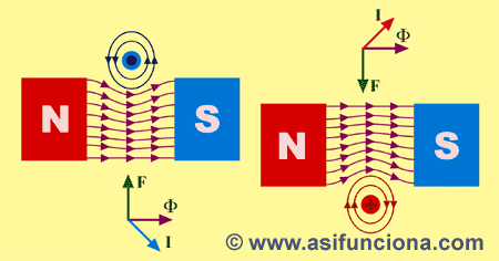 Si aplicamos la Regla de la mano izquierda basada en esta Ley, podemos determinar en qué sentido girará el rotor del motor.