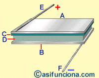 Composición interna más común de un capacitor no. polarizado. En (A) los números 1 y
