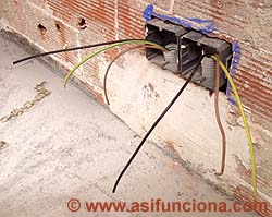 Caja preparada con conductores eléctricos de cobre para colocar. tomas de