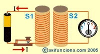 Conectemos ahora una pila al circuito de una bobina solenoide (S1) y un galvanómetro al circuito de una segunda bobina solenoide (S2).