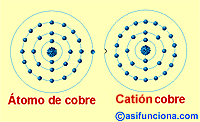 órbita y a la derecha un "ión" cobre, después que el átomo ha<