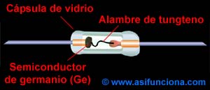 tungsteno* con una fina punta que hace presión sobre el cristal semiconductor de germanio.