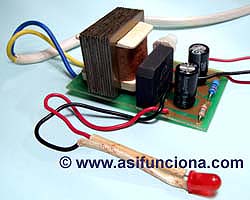 transformador encargado de transformar o rebajar los 220 volt de entrada en 12 volt de salida, también de corriente alterna. En el centro se puede observar un puente rectificador (con encapsulado KBL), que convierte los 12 volt de corriente alterna (C.A.) en 12 volt de corriente directa (C.D.). A la derecha se observan los dos capacitores electrolíticos y una de las resistencias que