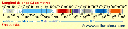 La única diferencia existente entre un grupo de ondas y otras dentro del espectro electromagnético es su frecuencia en hertz (Hz), su longitud en metros (m) y el nivel de energía que transmiten en joule (J).