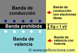 Cuando se eleva la temperatura de la red cristalina de un elemento semiconductor intrínseco, algunos de los enlaces covalentes se rompen y varios electrones pertenecientes a la banda de valencia se liberan de la atracción que ejerce el núcleo del átomo sobre los mismos. Esos electrones libres saltan a la banda de conducción y allí funcionan como electrones de conducción, pudiéndose desplazar libremente de un átomo a otro dentro de la propia estructura cristalina, siempre que el elemento semiconductor se estimule con el paso de una corriente eléctrica.