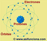 El átomo posee también una corteza o nube de partículas girando constantemente alrededor de su núcleo central denominadas electrones,