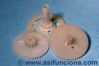 de izquierda a derecha, arriba: sartén, engranajes y protección de
