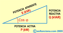 Triángulo de potencias que forman la potencia activa, la